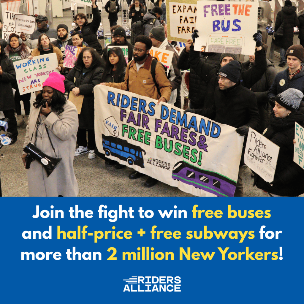 With transit fares rising and cost of living affecting millions of New Yorkers, we’re organizing bus and subway riders to win access to reliable, affordable transit by expanding the Fair Fares program so low-income riders can access free or half-fare transit and by making the buses free for everyone.