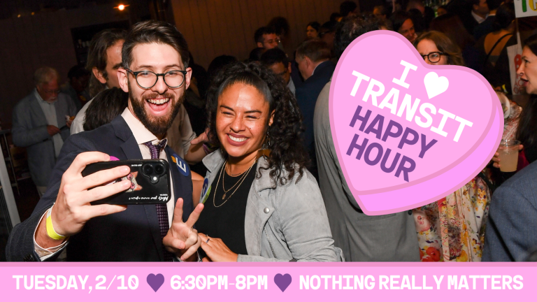 Join us for drinks, snacks, pizza, and fun at this year’s I ♥ Transit Happy Hour! I ♥ Transit is our annual happy hour gathering where we come out of the cold and show some love for transit and transit advocates.